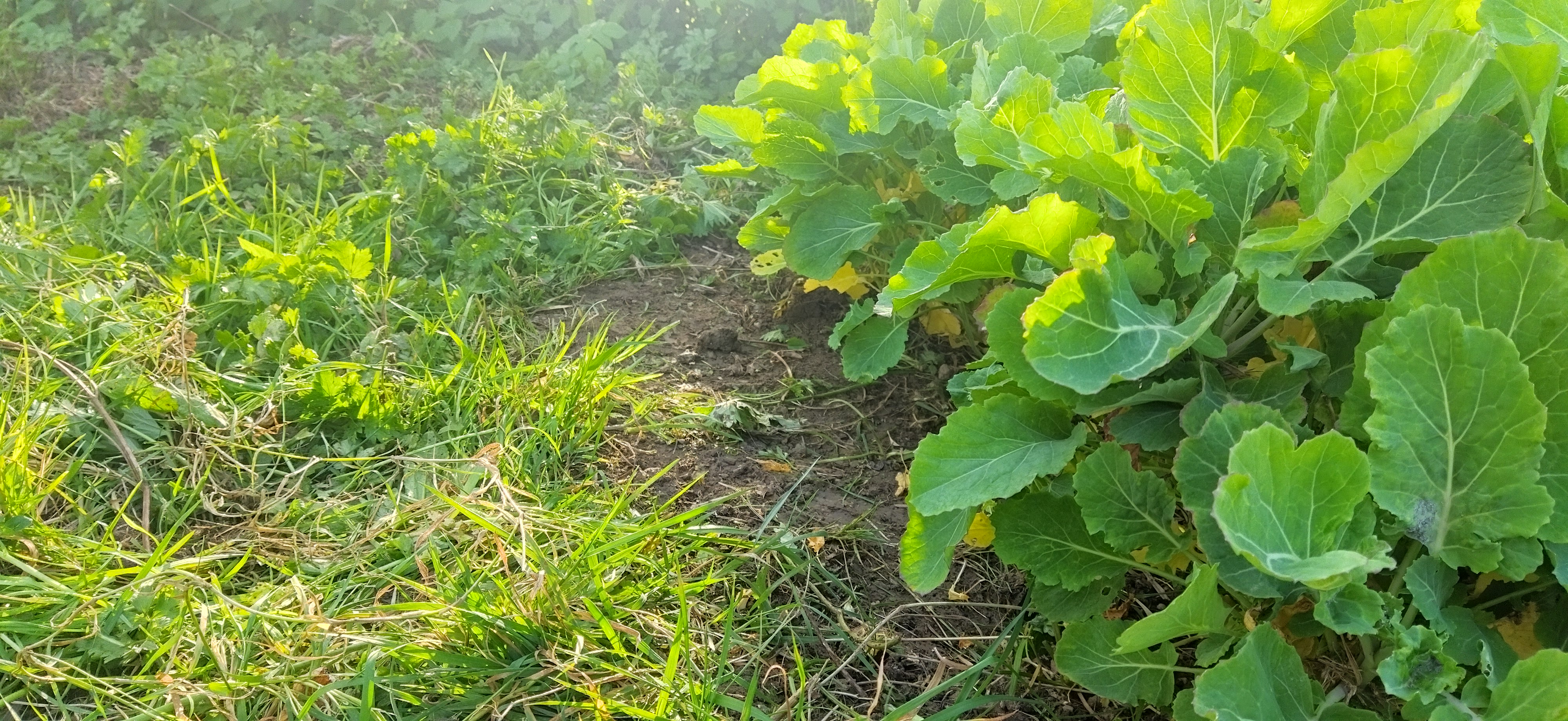 - On aime bien l’herbe, on aime bien quand tout se mélange, mais l’herbe indésirable aura toujours le dessus sur une plantation « désirable ». Donc première étape, circonscrire ladite plantation. Pour se faire: une pelle, je précise: affûtée, et trancher les herbes le plus à l’horizontal possible, et la largeur de la pelle suffira. Certes les racines resteront, mais au-moins, on y voit rapidement plus clair. La permaculture est loin de l’illusoire « laisser-fairisme » qu’elle véhicule bien malhonnêtement!